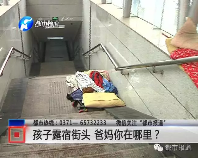 記者在鄭州市婦幼保健院南側(cè)的地下人行通道口看到,有一床被子鋪在通道的臺階上。