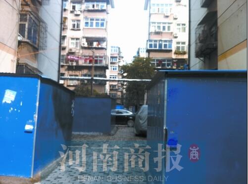 根據(jù)市民的反映,11月8日上午,河南商報(bào)記者來(lái)到位于百花路上的五棉社區(qū)。剛一進(jìn)門,小區(qū)內(nèi)一間間活動(dòng)板房就顯得格外扎眼,每個(gè)占地5~10平方米左右,大小不一,門上都有一把大鎖鎖著。在小區(qū)門口也建了兩個(gè)板房,只留下一輛車通過(guò)的空間。