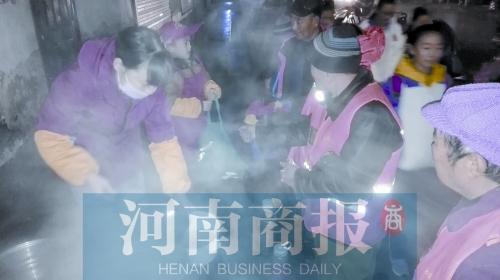 剛開始,她和隊(duì)友在鄭大一附院對(duì)面的立交橋下發(fā)粥,后來她就在西十里鋪84路公交站臺(tái)旁設(shè)了發(fā)粥點(diǎn)。現(xiàn)在,他們的愛心團(tuán)隊(duì)有46人,開設(shè)了四個(gè)發(fā)粥點(diǎn),另外兩個(gè)是姚寨發(fā)粥點(diǎn)和冉屯路電廠路口發(fā)粥點(diǎn)。