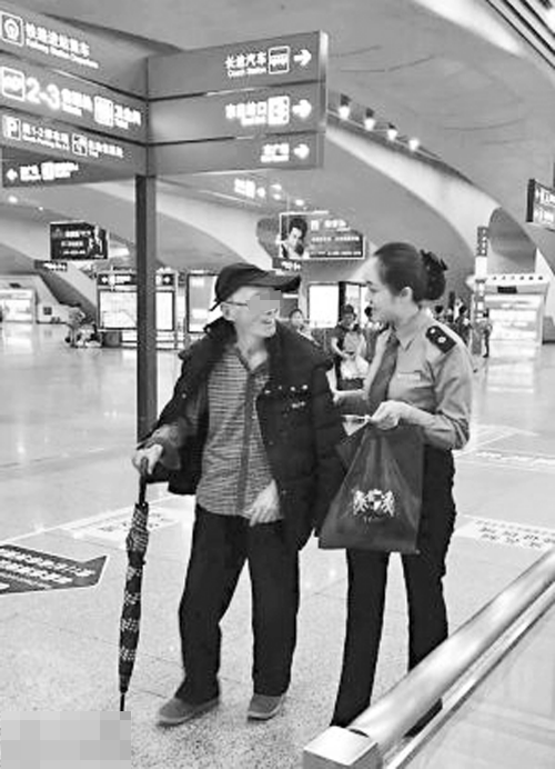 廣州南站客運(yùn)人員送老人回家