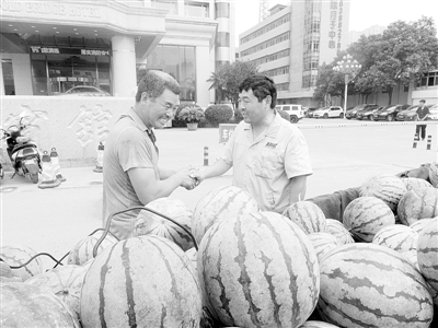 事發(fā)后,附近鄭州公交公司家屬院的居民都聞訊趕來購買愛心瓜。由于事發(fā)時拖拉機劇烈震動,車上的很多西瓜都被震裂,而這些西瓜如果不及時賣出,將會變質,瓜農的損失將會更大。鄭州公交二公司一車隊獲悉后,決定以零售價格全部買下何新象剩下的西瓜。