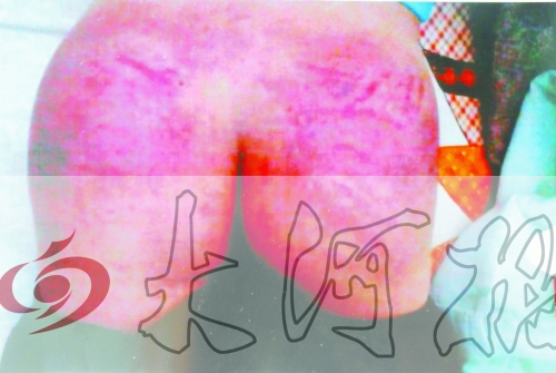 張松認(rèn)定帥帥拿了表藏在別處,于是將帥帥帶回宿舍審問。“我說我沒拿,老師就扇我耳光,后來又扒掉我的褲子用掃帚把打,用腳踹。上午打了我兩節(jié)課后,讓我站到教室外,不讓進(jìn)班上課。”帥帥說,8日下午,張松又將他拉到宿舍毆打,長達(dá)三節(jié)課。“老師邊打邊問表放哪兒了,我說我沒拿,老師打得更兇。”