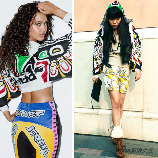 吳莫愁身穿adidas Originals x Jeremy Scott系列女款運(yùn)動服