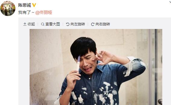 今日(10月21日)上午,陳思誠(chéng)更新微博,曬出一張手拿驗(yàn)孕棒的照片,并艾特佟麗婭稱“我有了”,畫面十分搞笑。