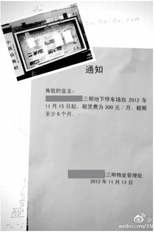 他稱將盡快對(duì)微博上的投訴進(jìn)行回復(fù),以消除通知帶來(lái)的影響和誤會(huì),同時(shí)將收集業(yè)主意見(jiàn),慎重考慮停車位費(fèi)用問(wèn)題。