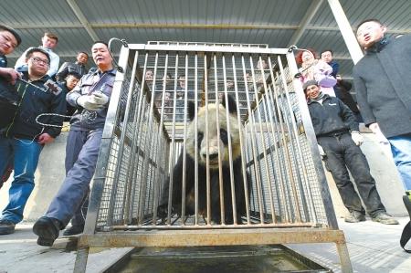 上午9時許,飼養(yǎng)員趁著“蜀蘭”早膳的時間對她進行出行前的身體檢查。體重95.6公斤,體溫36.2度,血壓正常。