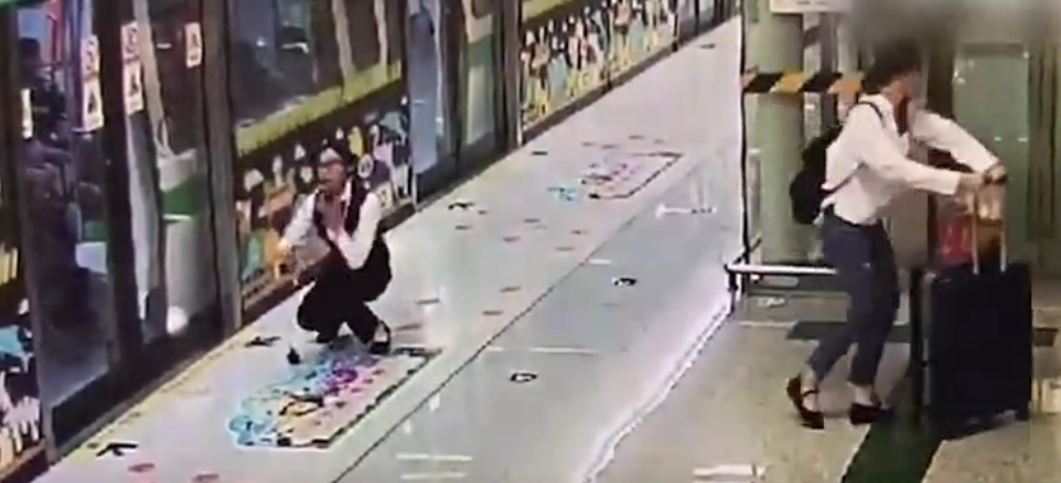 這一舉動(dòng)十足嚇了現(xiàn)場(chǎng)工作人員一跳,女子隨后不知什么原因,地鐵也不坐就離開了。