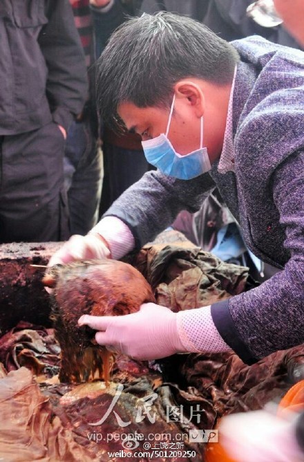 7月28日,在上饒市弋陽縣新看守所建筑工地,挖出一個古墓,現(xiàn)場掘出一口棺材,并發(fā)現(xiàn)一具保存尚為完好、身著疑似名門貴族服飾的女干尸。弋陽縣文物部門人員初步判斷,此是明代中期左右古墓。