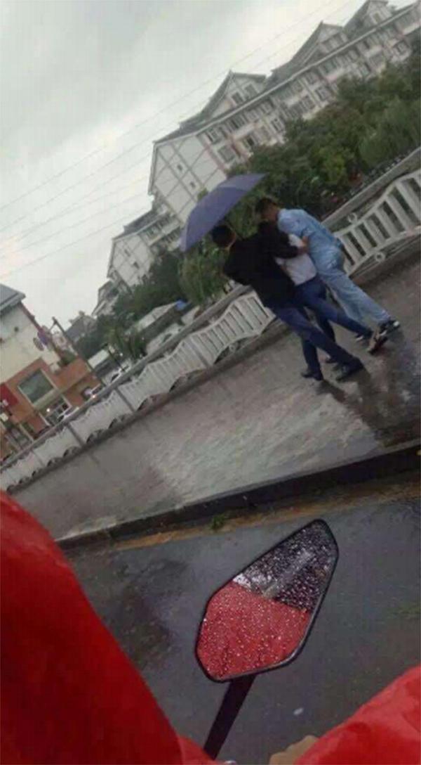 當(dāng)日下午6時(shí)許,小唐正騎著電動(dòng)車前往商家取餐,途經(jīng)都江堰市一環(huán)路柏條河橋路段時(shí),橋上人行道的兩名可疑男子引起了他的注意?!爱?dāng)時(shí),有兩個(gè)男的撐著傘,兩人之間還架著一個(gè)年輕的女娃娃?!拔耶?dāng)時(shí)已經(jīng)過他們了,但聽到一個(gè)男子說‘你不聽話就弄死你’,我一下就覺得不對勁了?!毙√平榻B,隨后他放慢了車速,來到了三人的身后側(cè)方位置,慢慢地跟隨在后方,同時(shí)掏出手機(jī),拍下了三人的照片?!爱?dāng)時(shí)想這個(gè)女娃娃肯定是遭到了綁架,拍照可以作為證據(jù)。”