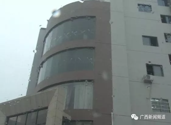 12月11日上午10時(shí)許,幾段視頻在一些來賓市民的微信朋友圈中頻頻轉(zhuǎn)發(fā),這些視頻顯示,來賓市桂中大道某酒店外,有一名年輕女子墜樓后,跌落至一輛五菱面包車車頂。