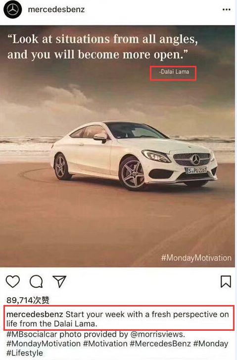 達(dá)賴那句話可翻譯為,從不同角度審視境遇,你的視野會(huì)更開(kāi)闊??墒牵袊?guó)的利益容不得任何角度的挑戰(zhàn),任何勢(shì)力,拿分裂中國(guó)做文章都是可笑的,也是不能得逞的。如果繼續(xù)傷害中國(guó)人民感情,不真正反思,再大的汽車(chē)公司恐怕也難以奔馳下去。
