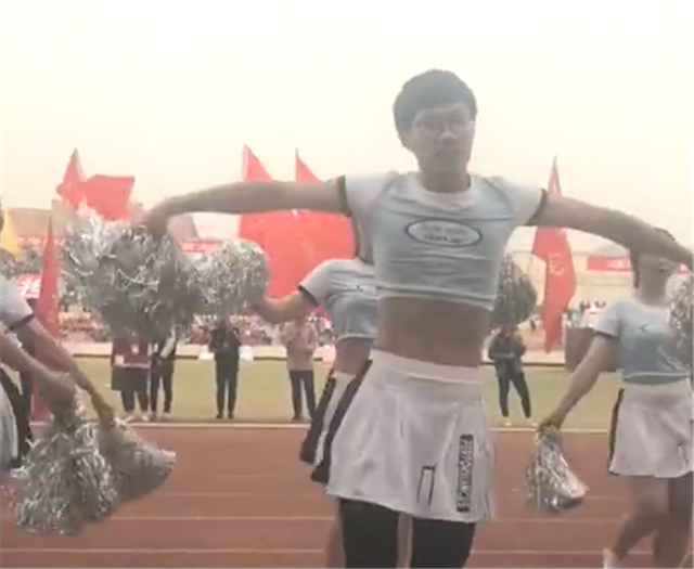 原標(biāo)題:畫風(fēng)清奇!鄭州大學(xué)一男生穿裙子跳啦啦操爆紅