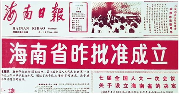 1988年4月14日,海南日報刊發(fā)海南省批準(zhǔn)成立的新聞。本報記者 何 偉攝