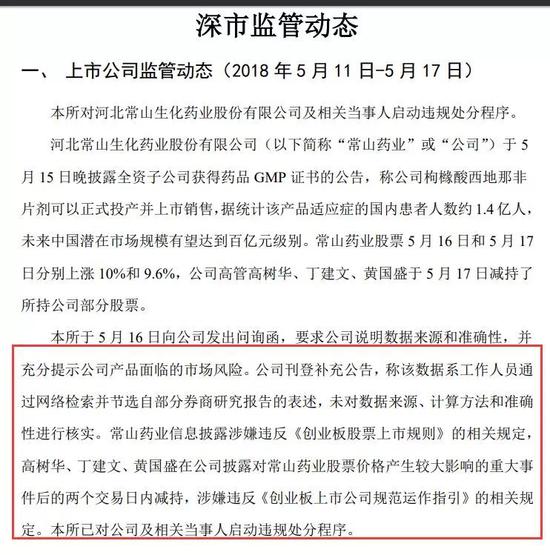 公眾質(zhì)疑也得到了有關(guān)方面的呼應(yīng)。據(jù)報(bào)道,5月18日晚間,深交所官方微信發(fā)布公告稱,深交所已經(jīng)對“常山藥業(yè)”及相關(guān)當(dāng)事人啟動違規(guī)處分程序。