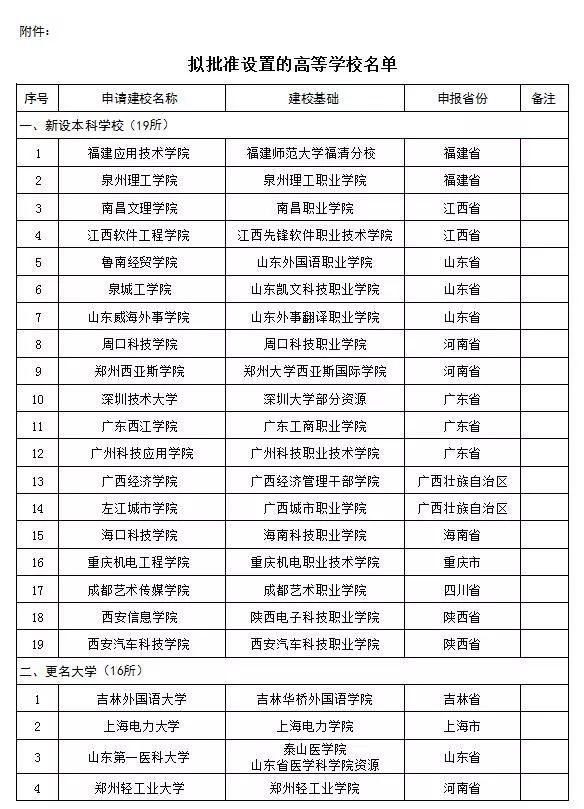 教育部擬批準(zhǔn)設(shè)置的高校名單如下: