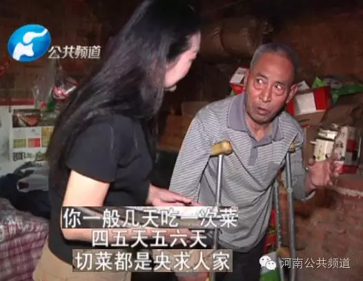 因?yàn)闅埣?,吳傳亭終身未婚,無兒無女的他如今一個(gè)人獨(dú)自生活。為了減少洗刷鍋碗瓢盆的麻煩,吳傳亭每天只能吃一些饅頭和剩菜,偶爾炒一次菜還需要請鄰居幫忙切好。