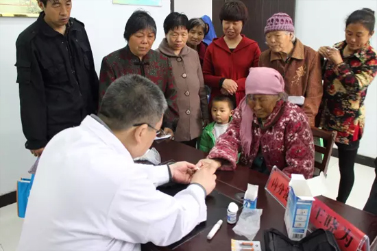 醫(yī)生正在為79歲的老奶奶測血糖