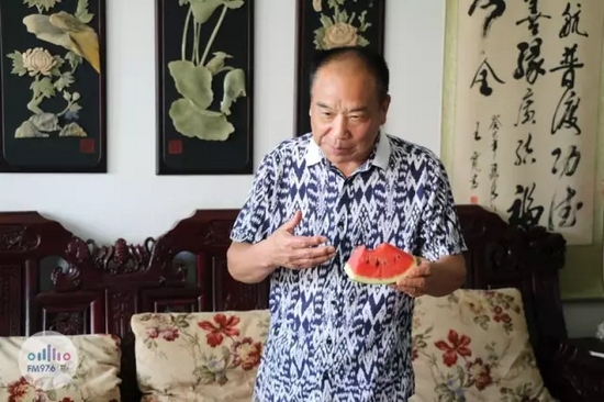 我們給他們每人都送了一個西瓜,遞到他們手里跟他們說:“你們辛苦了!”的時候,我們明顯能夠感覺到他們的喜悅,他們飽經(jīng)風(fēng)霜的臉上洋溢的笑容,讓人覺得特別溫馨、真誠。