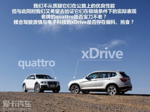 我們不從質(zhì)疑它們在公路性能上的優(yōu)良表現(xiàn),但與此同時我們又很希望去驗證它們在極端條件下的實際表現(xiàn),于是,在本期的四驅測試中,我們挑選了目前市場上最具代表性的兩款車,在荒蕪的沙地上來一次爬坡測試。到底看看在公路上“生龍活虎”的渦輪增壓發(fā)動機在越野路況下的實際表現(xiàn)到底如何?
