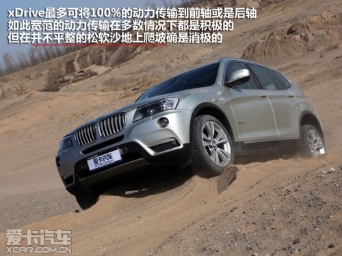 搭載3.0T發(fā)動機的寶馬X3,很顯然比Q5更為“肌肉”,但面對松軟的沙坡它也清楚的知道:光有腿部力量是遠遠不夠的,還必須要結合上肢力量才有可能登頂,此刻,xDrive系統(tǒng)起到了決定性的作用。
