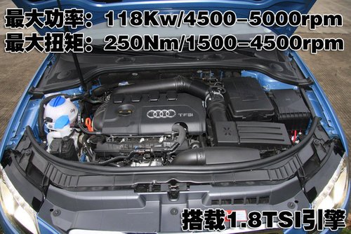 1.8升TFSI發(fā)動機在4,500轉(zhuǎn)/分至6,200轉(zhuǎn)/分可輸出最大功率118千瓦,在1,500轉(zhuǎn)/分至4,500轉(zhuǎn)/分可輸出250牛·米的最大扭矩。這款發(fā)動機匹配6擋手動變速箱或7速S tronic變速箱,其動力表現(xiàn)完全超越了同排量級別的自然吸氣式6缸汽油機型,以匹配7速S tronic的A3 Sportback車型為例,其0到100公里/小時加速成績僅為7.7秒,最高車速可達222公里/小時。
