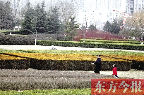 18日,鄭州市航海廣場上一位父親帶著孩子在放風(fēng)箏,孩子歡快的笑聲不時(shí)響起(如圖)。