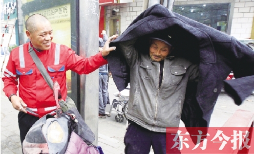 ◎“雷鋒哥”沿街送棉衣 市民稱贊