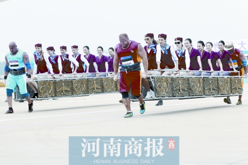 昨天下午3時(shí)許,鄭州新鄭國(guó)際機(jī)場(chǎng)。2013年世界大力士爭(zhēng)霸賽重頭戲——拉飛機(jī)比賽,在此上演。