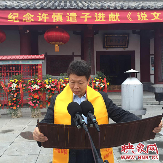 映象網漯河訊(記者 常衛(wèi)東 通訊員 王笑陽)為紀念許慎遣子進獻《說文解字》1895周年,10月20日上午,2016 年許慎文化廟會在許慎文化園隆重開幕。漯河市政協主席張社魁、漯河市人大常委副主任杜廣全、市政協副主席田冠亭等領導,河南省文字學會會長、河南大學教授、博士生導師王蘊智,河南省12家高等院校專家學者,許學愛好者、漯河市中小學校代表、旅行社代表、徐氏宗親代表、市民代表等參加廟會活動。