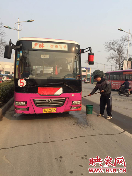滎陽200多輛公交車“洗澡”迎春運