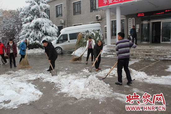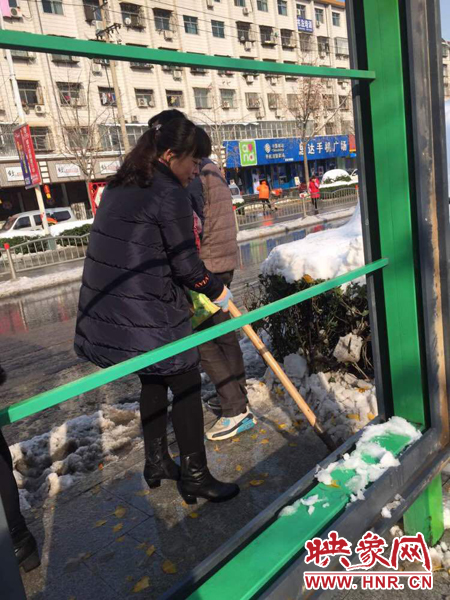 滎陽:百余公交人 街頭除冰雪