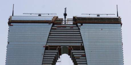 蘇州“秋褲樓”“穿衣”緩慢 幕墻穹頂尚未封閉