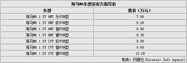 海馬汽車在進(jìn)入新一輪快速發(fā)展期以來,除了實(shí)現(xiàn)產(chǎn)品平臺的升級和新產(chǎn)品的推出之外,最重要的一項(xiàng)便是創(chuàng)新技術(shù)運(yùn)用。海馬旗下全新A+級轎跑車M6正是遵循此理念推出的車型。網(wǎng)通社在上海車展第一時(shí)間發(fā)回現(xiàn)場報(bào)道,海馬M6于今日正式上市,新車售價(jià)區(qū)間為7.68-10.28萬元,共7款車型。這款新車搭載了一臺1.5L渦輪增壓發(fā)動(dòng)機(jī),匹配CVT變速箱。此外,新車還是海馬旗下首款搭載“moofun”系統(tǒng)的車型。