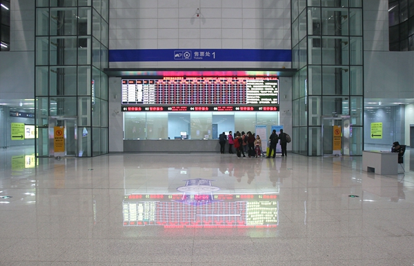 鄭機(jī)城鐵機(jī)場(chǎng)站候車大廳,空蕩的大廳內(nèi)只有少數(shù)乘客