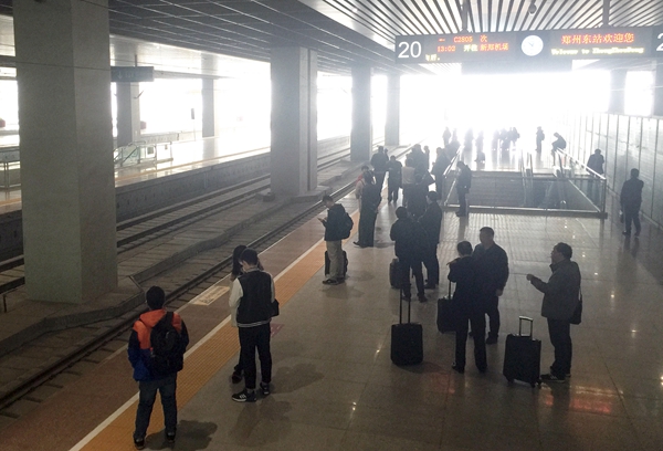 可乘坐613名乘客的班車,在鄭州東站發(fā)往新鄭機(jī)場(chǎng)站的站臺(tái)上,卻只有很少的乘客在等待