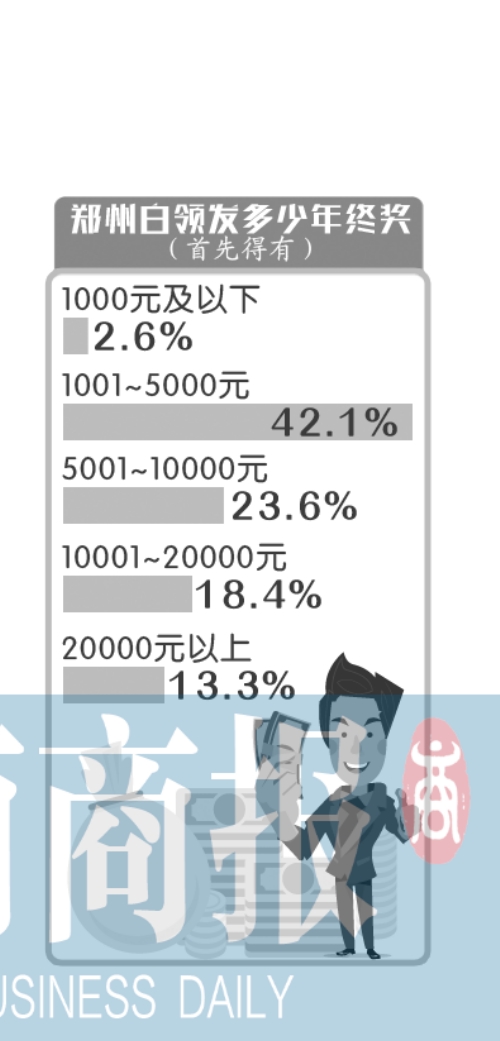 近日,智聯(lián)招聘網(wǎng)站發(fā)布調(diào)查顯示,參與調(diào)查的鄭州白領(lǐng)有超四成表示能拿到2016年年終獎(jiǎng),這其中近五成表示年終獎(jiǎng)不足5000元,而孝敬長(zhǎng)輩和還貸款是年終獎(jiǎng)主要使用方式。