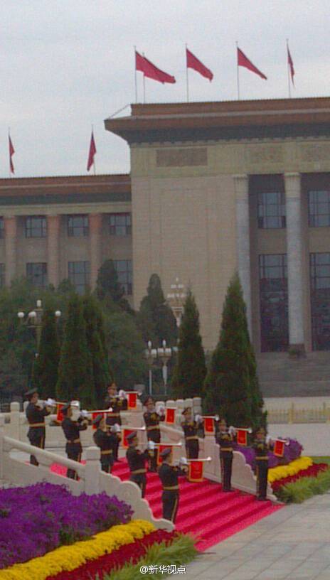 新華網(wǎng)北京9月30日電 據(jù)新華社“新華視點(diǎn)”微博報(bào)道,今天是國家設(shè)立的首個(gè)烈士紀(jì)念日,正值新中國成立65周年之際。上午,習(xí)近平、李克強(qiáng)、張德江、俞正聲、劉云山、王岐山、張高麗等來到天安門廣場(chǎng),與首都各界代表一起,出席向人民英雄敬獻(xiàn)花籃儀式。