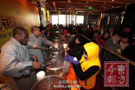 今早9點(diǎn),大學(xué)路二七萬達(dá),聚集上千人,少林寺免費(fèi)施粥,三天熬制兩萬份。不少市民早上7點(diǎn)來排隊(duì),提著餐盒保溫桶大碗,現(xiàn)發(fā)現(xiàn)喝。大早上一碗熱乎乎的臘八粥下肚,透心暖。現(xiàn)場人員還在源源不斷增加中。今天你喝臘八粥了嗎?