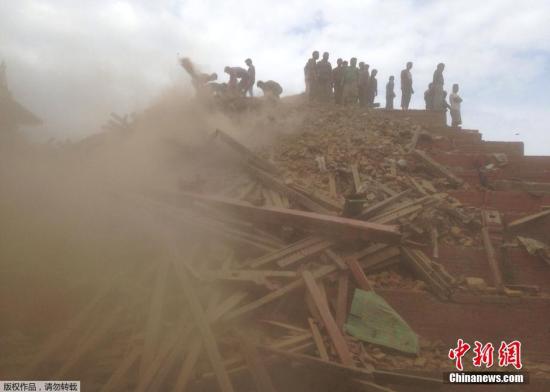 據(jù)中國(guó)地震臺(tái)網(wǎng)正式測(cè)定:04月25日14時(shí)11分在尼泊爾(北緯28.2度,東經(jīng)84.7度)發(fā)生8.1級(jí)地震,震源深度20千米。圖為加德滿都地震救援工作展開。