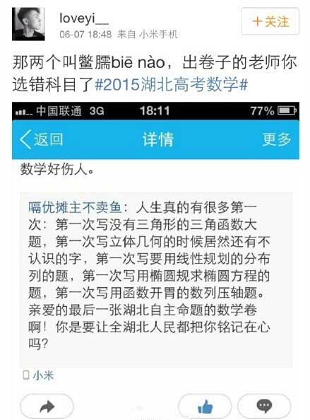 昨天,湖北考生炸了!表示從沒(méi)做過(guò)如此厚顏無(wú)恥的數(shù)學(xué)題…“寫立體幾何,居然還有不認(rèn)識(shí)的字”,據(jù)說(shuō)那個(gè)字叫鱉臑biē nào,來(lái)自《九章算術(shù)》。據(jù)百度百科:斜解立方,得兩壍堵。斜解壍堵,其一為陽(yáng)馬,一為鱉臑。考出了文言文的感覺(jué)!老師別鬧!