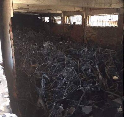 今天凌晨1點(diǎn)半左右,鄭州二七區(qū)新浦街5號(hào)院的電動(dòng)車棚突發(fā)火災(zāi),近百輛電動(dòng)車被燒成骨架。據(jù)目擊者稱,電動(dòng)車充電時(shí)爆炸引發(fā)火災(zāi)。小區(qū)居民稱,小區(qū)消防通道不暢,消防栓竟然沒(méi)有一滴水,耽誤了最佳撲救時(shí)間。