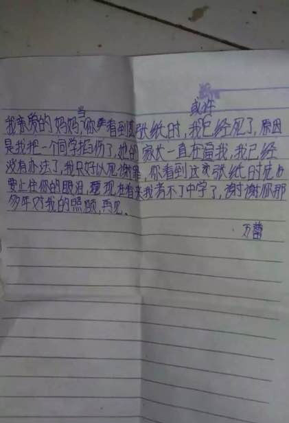 (湖南綏寧小學(xué)生跳樓身亡,遺書稱遭同學(xué)家長(zhǎng)逼迫,一張疑似絕筆信的照片在網(wǎng)上流傳,內(nèi)容為一名學(xué)生向媽媽臨終告別,后面還附有多張醫(yī)院搶救照,遺書的作者是湖南綏寧縣長(zhǎng)鋪二小5年級(jí)的一名學(xué)生,目前已經(jīng)跳樓身亡。)