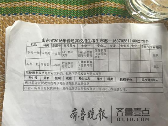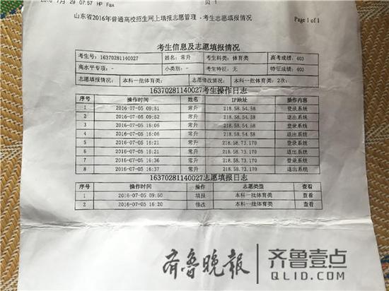后來(lái),他們從青島市招生辦網(wǎng)上填報(bào)志愿系統(tǒng)了解到,7月5日上午10點(diǎn)左右報(bào)完志愿后,下午4點(diǎn)20分,常升的志愿被修改,一志愿被改為了魯東大學(xué)社會(huì)體育指導(dǎo)與管理專業(yè)。