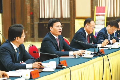 10月31日,謝伏瞻同志與出席省第十次黨代會鄭州市代表團的代表們一起審議中共河南省第九屆委員會工作報告。記者董亮攝