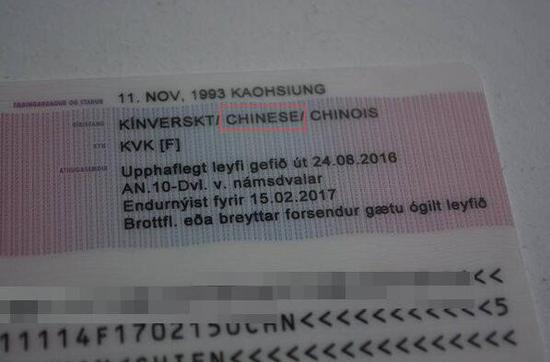 原標題:臺灣女生不滿冰島居留證被列中國籍 結(jié)果被改為“無國籍”