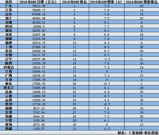 2017年地方兩會,31個(gè)省市區(qū)也公布了今年各自GDP增速目標(biāo),為接下來一年的經(jīng)濟(jì)建設(shè)工作定調(diào)。