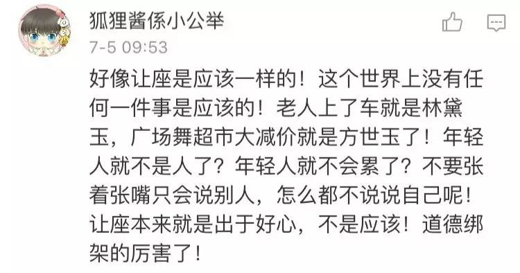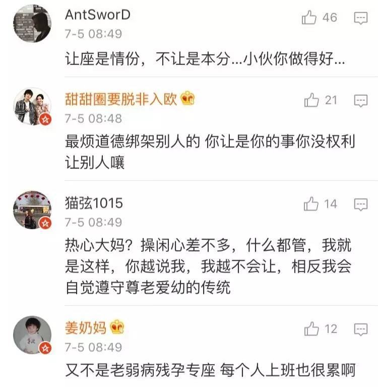 然而大多數(shù)網(wǎng)友都支持小伙的做法,上班族也很累,年輕人也有體力透支的時候,不應(yīng)把“讓座”當(dāng)成一種道德綁架。