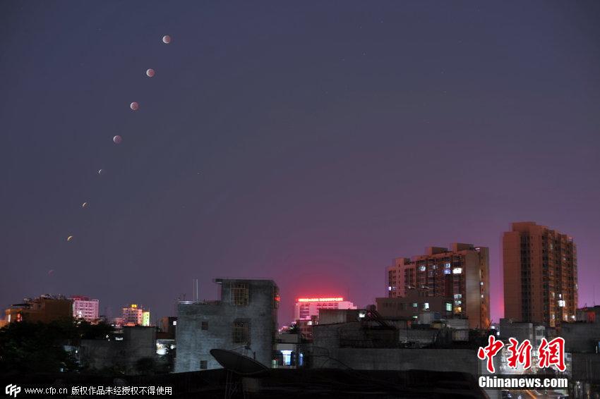4月4日,深圳,月全食,一輪紅月亮現(xiàn)身夜空。(合成)鄧飛/CFP