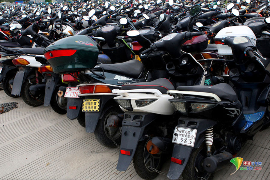 2015年6月4日,超寬、超速、非法營(yíng)運(yùn)三輪電摩及各種摩托車密密麻麻重重疊疊地堆積在一起,從高空中俯瞰場(chǎng)面震撼。這不只是杭州一家報(bào)廢車停車場(chǎng)的情景,幾乎每家停車場(chǎng)都如此。工作人員說,這都是交警執(zhí)法過程中收繳的。工作人員跟記者抱怨說,電摩停放時(shí)間太長(zhǎng),再不拆解都停不下了!據(jù)負(fù)責(zé)人介紹,杭州自禁摩托車以來,總有一些違規(guī)者偷偷地利用摩托車充當(dāng)黑摩的。此舉既不安全,也暗藏各種不安全因素。2014年,杭州有204人死于涉及電瓶車的交通事故;在所有交通事故中,涉及電瓶車的占到四成以上。3月25日,有杭州媒體報(bào)道,杭州收繳的電動(dòng)車已堆滿停車場(chǎng),據(jù)估算馬路上還有百萬輛以上超標(biāo)車。(金童子/攝)