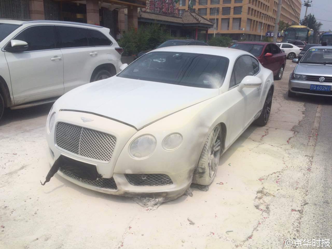 上午10點(diǎn),回龍觀龍禧三街一酒店門口,一價(jià)值400多萬賓利車起火。目擊者稱,新娘從賓利下車后,車底因留有未熄滅鞭炮導(dǎo)致左前胎起火,后被撲滅。回龍觀消防中隊(duì)初步判定為遺留火種引發(fā)。車主稱,修車費(fèi)至少要20多萬。(記者 賈婷 趙思衡)